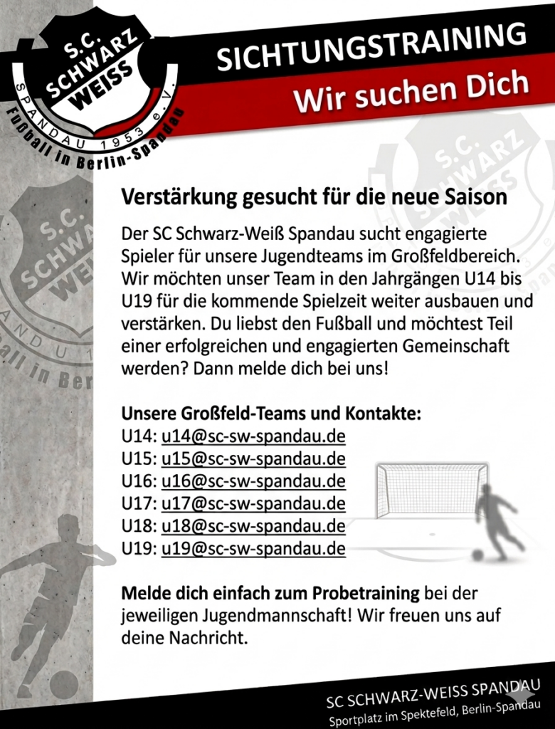 Willkommen beim SC Schwarz-Weiss Spandau 1953 e.V.