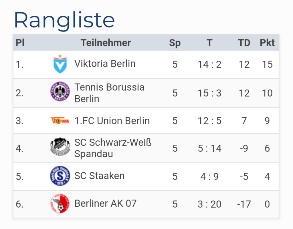 Nach einer kurzzeitigen, gesundheitlichen Absage eines Teams wurde kurzerhand die Spielzeit erhöht. Wir bedanken uns beim 1. FC Union Berlin, Tennis Borussia, dem Berliner AK 07, dem SC Staaken und FC Viktoria Berlin 1889 für wirklich spannende Herausforderungen und gratulieren Letzteren dann auch zum verdienten Sieg.